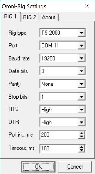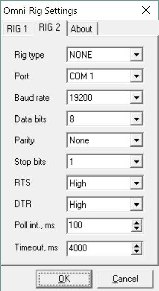 These settings have been found to work well. Note in Rig1 the Port is part of the virtual serial cable, explained in the Console configuration. You do not want Rig2 defined so select NONE from the RigType dropdown. Set the polling interval in ms to 200ms, the default is 1000ms.
