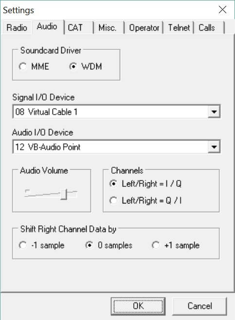 - Bandwidth - the data (IQ) bandwdith sent over the virtual audio cable. The recommended bandwidth is 48kHz, make sure the virtual audio cable is configured to support the selected value.