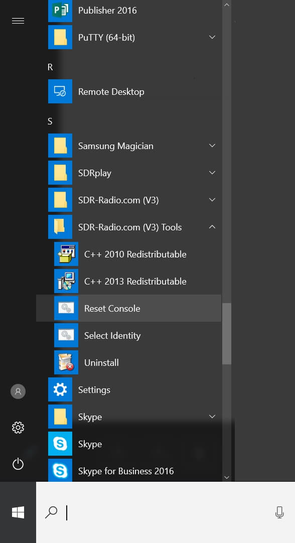 - Uninstall the software using either the Programs and Features option in the control panel or by selecting Uninstall from the SDR-Radio.com (V2) entry in the start menu.
