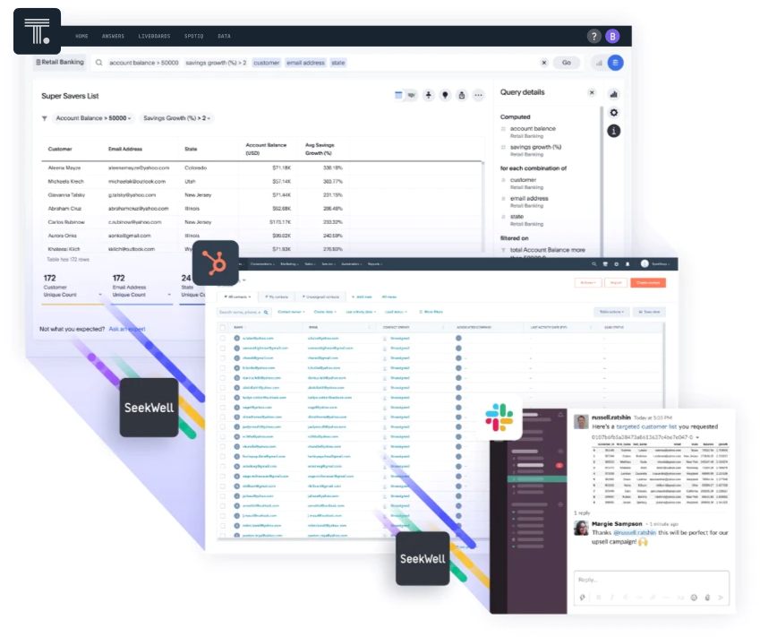 Les équipes marketing, vente, support client et autres utilisent constamment des applications pour gérer leurs activités. Plutôt que de créer et gérer des intégrations, connectez-vous directement avec ThoughtSpot Sync.
